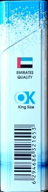 Материал для изготовления пачки сигарет OK Red size 100 был выбран – картон. При оформлении дизайнер использовал метод минимализма. Вот и получилась такая себе на первый взгляд простая, но и в тоже время стильная пачка. На белом фоне вверху пачки на крышке короткая надпись названия бренда «ОК». Размытая внизу синяя полоса указывает на то, что сигареты «OK Blue size 100» принадлежат к синей линейке сигарет. На этой полосе изображена галочка, в которой как будто распадаются пиксели… Она-то и указывает на название самого бренда – Окей!