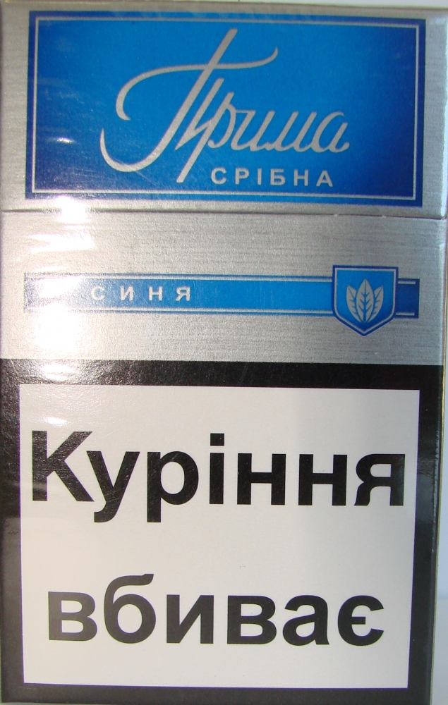 «Прима Срібна» (Синяя) - это первые сигареты "Прима" которые начались выпускаться с фильтром.Данные сигареты представляют линейку сигарет с фильтром, имеют среднюю крепость и классический аромат табачного дыма. Зачастую их расценивают как сигареты эконом-класса.